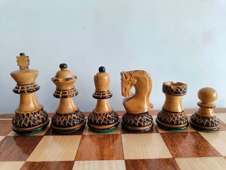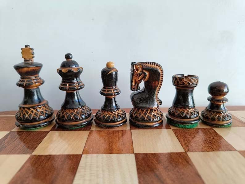 INDIACHESSART 2.6″ wooden Handcarving Russian Zagreb chess pieces | weighted Chessmen in Burnt Boxwood | Tournament chess