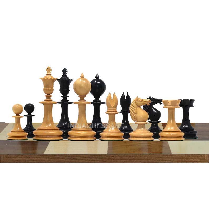 INDIACHESSART – 3.5″ William Hallett 1860 London Reproduced Chess Set in Natural Boxwood – Ebonies – 3.5″ King | Best chess set