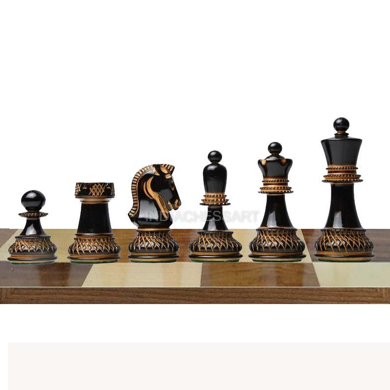 INDIACHESSART The 1950 Reproduced 3.7″ King Dubrovnik Bobby Fischer Chessmen in Lacquer Finished Burnt & Natural Box Wood