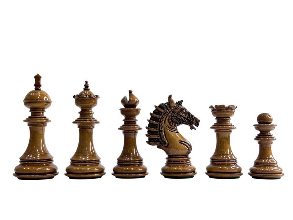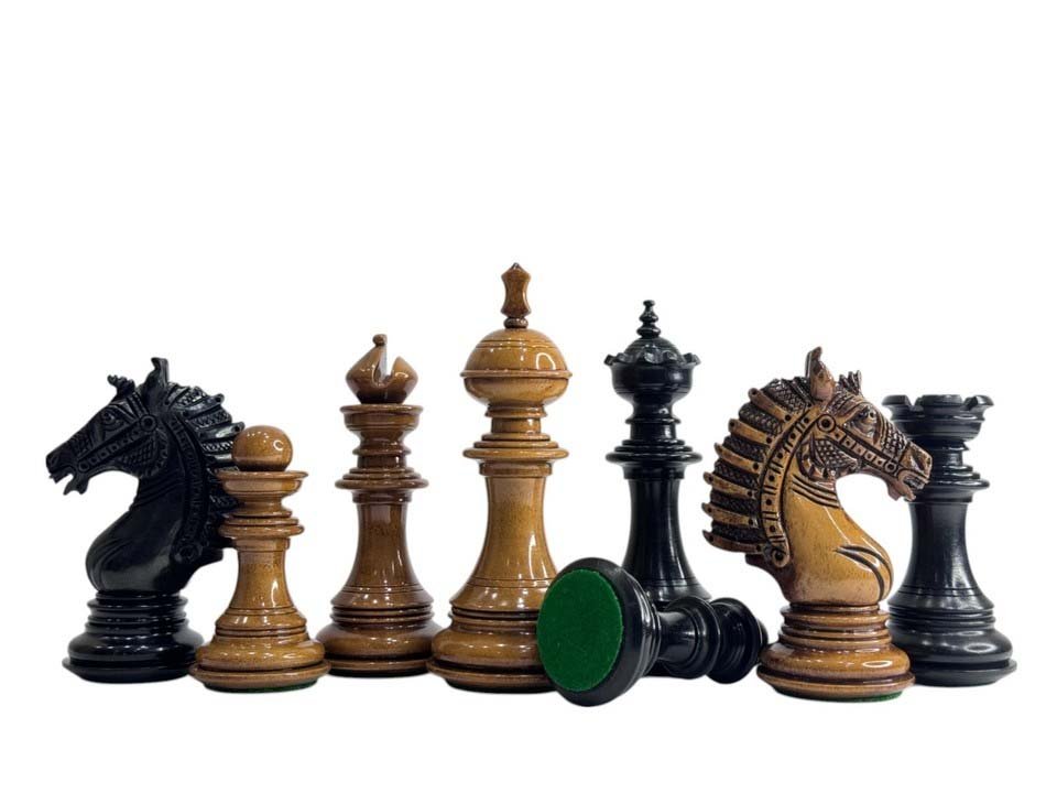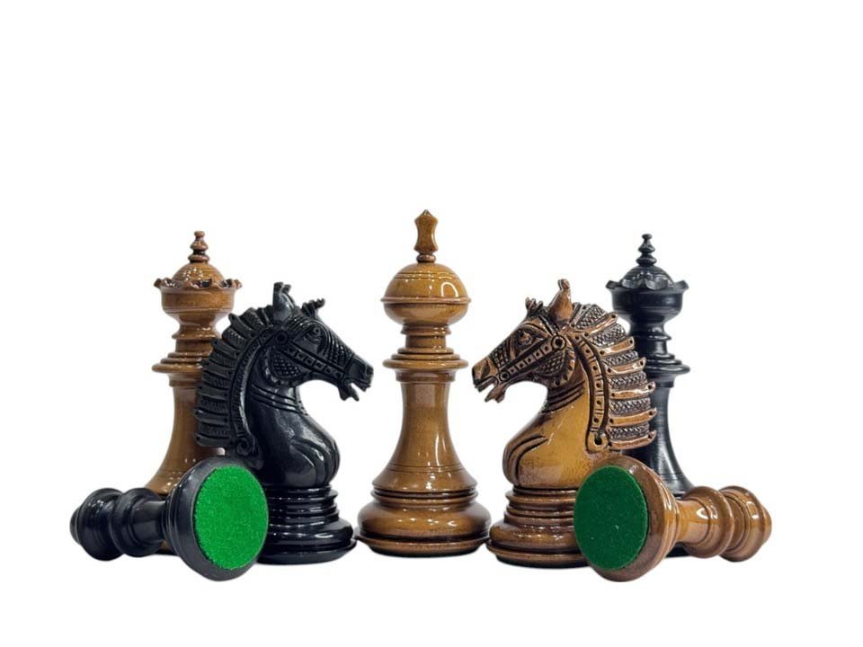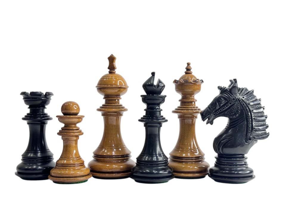 The Sikh Empire Series Handmade Luxury Chess Pieces Only Set – Triple Weighted Lacquered Distress Antiqued Boxwood & Ebony wood – 4.5″ King